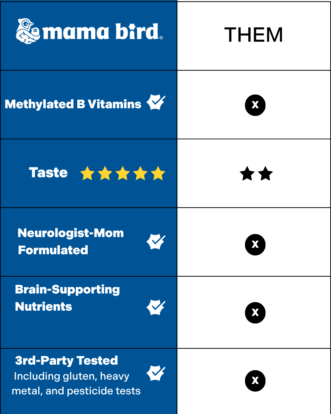 Since 2015, Mama Bird has grown into a full line of brain-first supplements designed to support families from pregnancy through parenthood. With every product, Dr. Mika Gupta’s passion is clear: empowering families to live healthier, happier lives by prioritizing the nutrition that matters most.