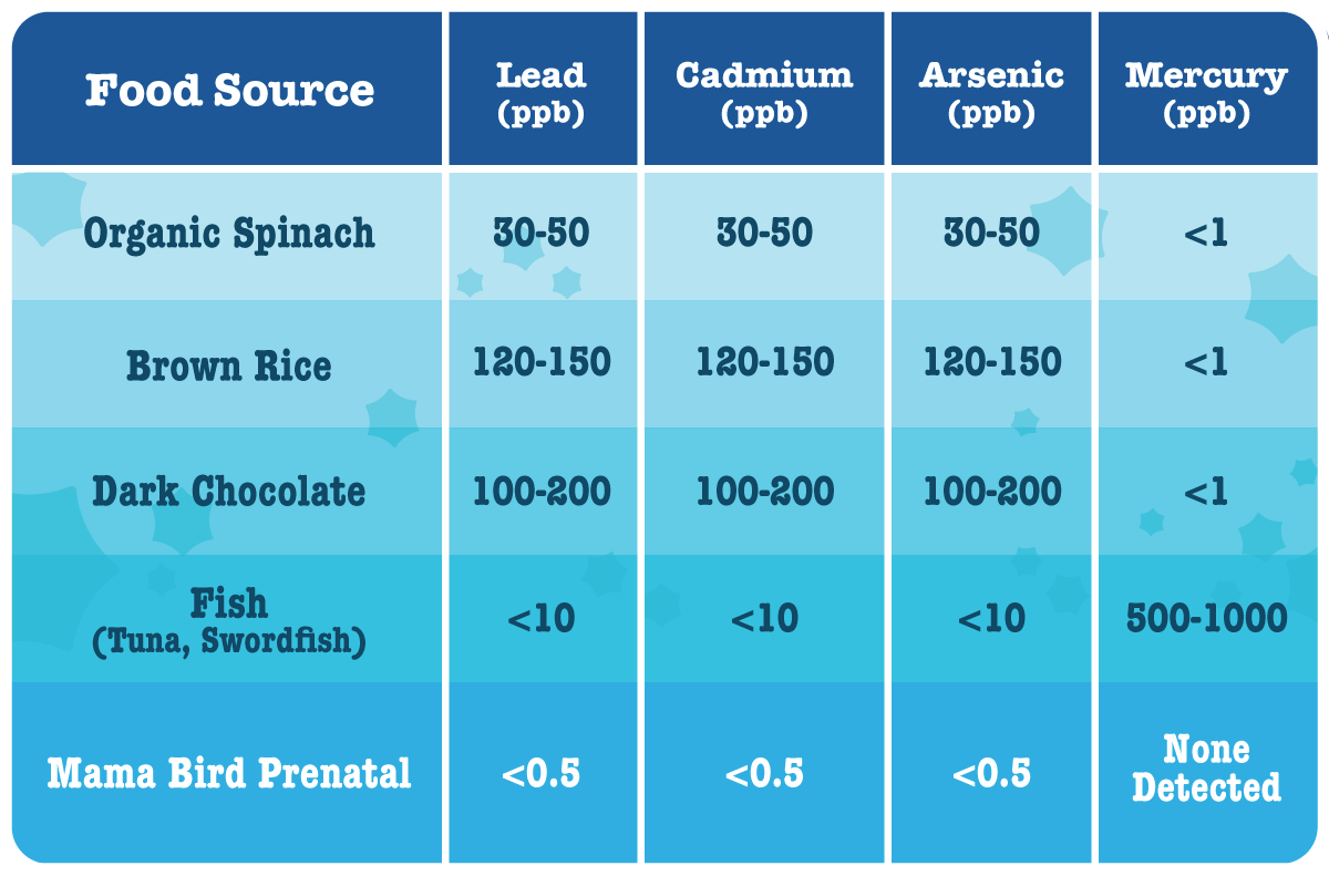- Every batch of Mama Bird supplements is tested by an independent, ISO-accredited lab for heavy metals, microbes, and more.