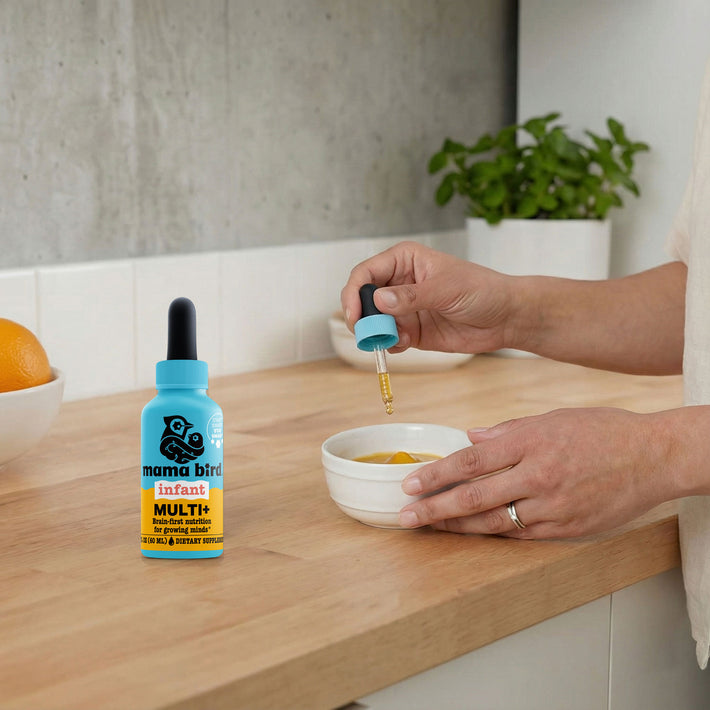 Mama Bird Infant Multi+ is the only infant multivitamin created by a neurologist-mom, delivering bioactive, brain-supporting nutrients designed for connection, calm, and healthy cognitive growth