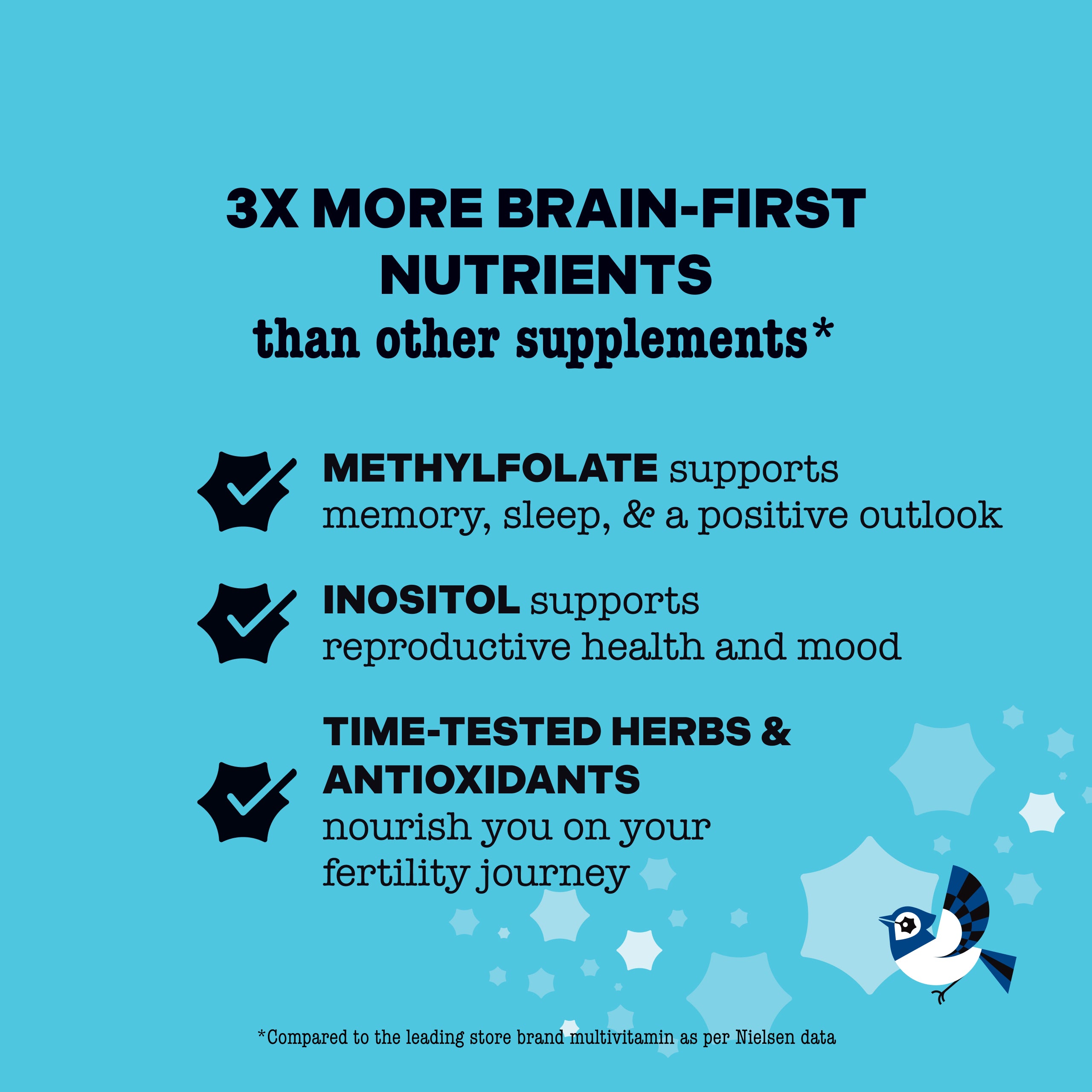 - Brain-healthy antioxidants – support your body’s defenses, preconception nutrition, and overall health and well-being.